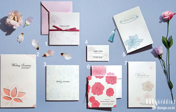 3,5결혼하는 한 쌍의 부부를 일러스트로 아름답게 연출한 청첩장은 각각 민트카드, 예랑카드.