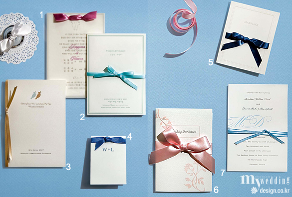 고급스럽고 사랑스러운 느낌을 살리고 싶다면 리본 장식으로 포인트를 준 청첩장을 선택하는 것이 안성맞춤이다.