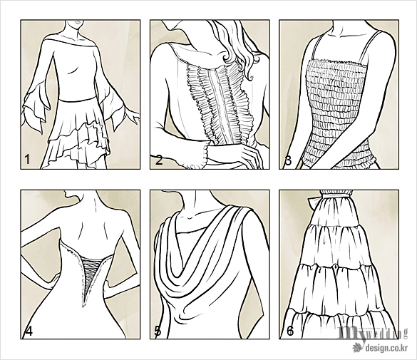 드레이프는 일정한 형식을 취하지 않은 부정형 주름을 말한다. 그중에서도 브레스트 드레이프란 ‘‘U’자를 그리는 부드러운 곡선이 가슴 부분에 흘러내리듯 된 처리된 것. 여신 같은 당당한 아름다움을 보여주기 때문에 이브닝드레스는 물론 웨딩드레스의 디테일로 사랑받고 있다. 때로는 같은 모양을 깊게 파서 등 쪽에 응용하기도 한다.