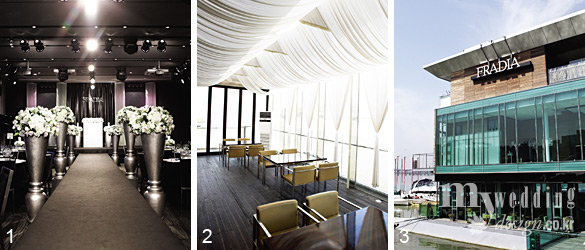 프라디아 웨딩은 커플을 위해 예식 전, 예식 당일, 예식 후 등 단계별로 이벤트를 마련하고 있다. 3층 이탤리언 다이닝&바인 디아The a에서 프러포즈부터 칵테일이 무한 제공되는 브라이덜 샤워, 애프터 파티, 1주년 기념 로맨틱 디너 등을 모두 이용할 수 있는 것. 애프터 파티의 경우 20% 할인 혜택도 주어진다. 미리 예약할 경우 프라디아 전체를 웨딩 촬영 장소로도 대여할 수 있다. 현재 2009년 1, 2월 웨딩 고객을 위한 식사 할인 혜택 이벤트를 진행 중이다. 주중 점심 예식은 20%, 주중 저녁은 15%, 주말 점심 저녁 식사는 10%를 비롯해 주류 20% 할인과 혼구 용품, 폐백실 사용료 무료 등이 바로 그것. 한남대교 남단 한강 잠원 지구 수영장 옆에 위치하며 잠원역에서 무료 셔틀버스를 운행한다. 문의 02-3477-0033 www.fradia.co.kr