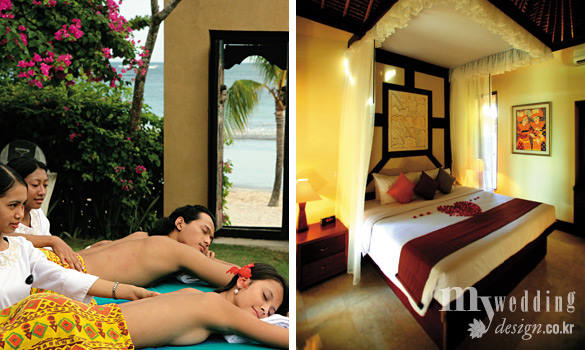 (왼쪽) 보디, 발마사지 등 다양한 프로그램으로 이루어진 스파는 빌라 정원이나 방갈로 등에서도 즐길 수 있다.