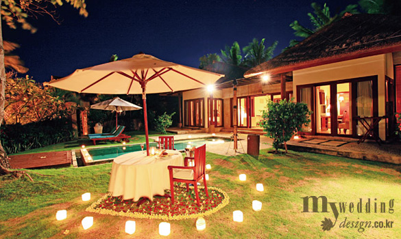 풀빌라 정원에서 둘만의 낭만적인 캔들 라이트 디너를 경험해보자.