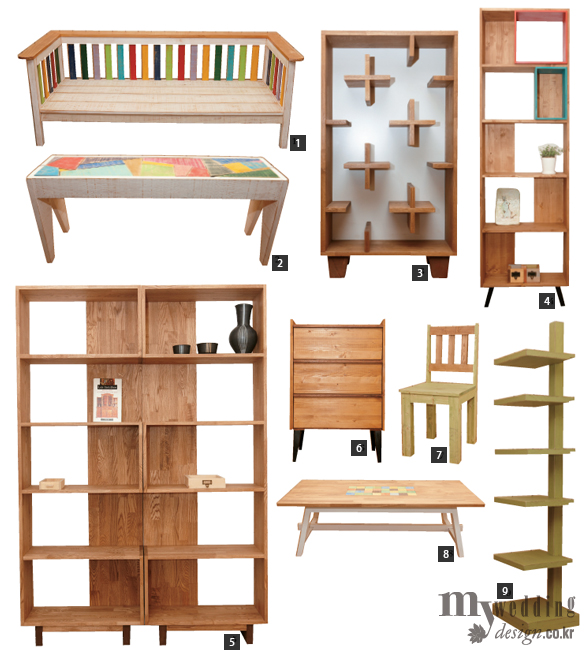 맞춤 가구 제작, 이것만은 알고 가자 모든 혼수품이 마찬가지지만 특히 가구는 예비 신부가 선택에 신중을 기하는 품목이다. 덩치가 큰 만큼 어떤 가구를 세팅하느냐에 따라 신혼집 인테리어가 좌우되기 때문이다. 유명 브랜드의 제품을 패키지로 구입하면 편리하긴 하지만 밋밋한 분위기는 피할 수 없고, 여기저기 가구 숍을 돌며 발품을 팔아보지만 마음에 쏙 드는 것은 없고…. 이때 해법은 디자인, 크기, 색상, 두께를 내 마음대로 선택할 수 있는 맞춤 가구. 동일한 크기와 디자인으로 대량 생산된 제품이 아닌, 나만의 개성이 담긴 독특한 가구를 완성할 수 있다는 것이 가장 큰 매력이다. 놓는 자리에 딱 맞게 짜 넣음으로써 좁은 신혼 공간을 100% 활용 가능하다는 것도 장점이다. 같은 공간에서라도 수납을 극대화할 수 있는 것. 또 수납할 양과 종류에 따라 세부 디테일을 달리하므로 외관상 정돈된 분위기를 연출해준다. 그렇다면 이런 맞춤 가구는 어디서 제작할 수 있을까? 아기자기하고 예쁜 제품들이 즐비한 홍대 앞 공방 거리와 다양한 디자인 제품이 많은 논현동 가구 거리, 가구뿐 아니라 몰딩이나 거울 등 인테리어 자재도 판매하는 을지로 4가 등이 대표적이다. 홍대 앞은 주로 원목을 사용하고 컬러나 디자인이 다채로운 편. 논현동과 을지로에서는 원목뿐 아니라 철재나 패브릭 등 다양한 소재를 사용하며 을지로보다는 논현동의 가격대가 좀 더 높다. 보통 맞춤 가구로 많이 제작하는 것은 식탁, 책상 등의 탁자류고 책장, TV장, 서랍장, 장식장, 소파, 장롱 등도 인기 품목. 이외에도 침대나 주방 가구, 1인용 의자나 스툴, 인테리어 소품까지 원한다면 모두 제작할 수 있다. 가격대는 업체, 소재와 디자인에 따라 천차만별이지만 심플한 원목 가구를 기준으로 탁자류가 60만~100만원, 책장 40만~60만원, 서랍장 80만~120만원, 장식장 100만~120만원 선. 여기에 다른 소재를 더하거나 디자인의 디테일이 많아질수록 가격이 올라간다고 보면 된다. 맞춤 가구를 의뢰하기 전에는 먼저 가구를 배치할 공간이나 벽면의 치수를 재고 사진을 찍어둔다. 그리고 숍을 찾아 전문가와 상담하며 집 안 분위기나 구상한 디자인에 맞춰 소재나 스타일을 정한다. 이때 외국 잡지나 인터넷 등에서 찾아 스크랩해둔 사진이나 원하는 디자인의 대략적인 스케치를 제시하는 것도 좋은 방법. 나무도 종류가 다양하므로 소재를 정할 때는 꼭 샘플을 눈으로 확인하고 사용량, 도색 방법 등을 확인하자. 그다음 각 부분의 치수, 외관과 내부의 세부 디테일, 컬러 등을 정하게 된다. 상담을 통해 결정한 사항을 반영한 도면을 메일로 받아 확인한 다음 제작에 들어가면 1~2주 정도 지나 완성품을 받을 수 있다. 마지막으로 제작 완료 후 배송과 잔금 납입 방법도 꼭 확인하자.