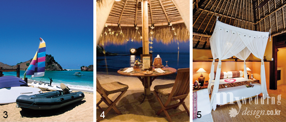 3 맑고 깨끗한 바닷가에서 스노쿨링, 카누, 윈드 서핑 등의 해양스포츠를 즐길 수 있다.