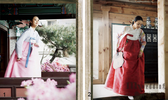 전통적인 가치는 변하지 않는 한복의 특성상 몇 년 뒤에 꺼내보아도 뒤떨어지지 않는 무난한 디자인과 색상으로 선택할 것. 또 한복의 맵시를 살리려면 자신의 체형과 얼굴형, 목선에 따라 디자인을 달리해야 한다. 얼굴이 길거나 목이 긴 경우에는 깃을 조금 넓게 하여 목을 다소 많이 감싸는 형태가 안정감 있다. 목이 짧거나 굵을 경우에는 목이 시원해 보일 수 있도록 깃이 내려오고 고대가 깊게 파이게 입는 것이 좋으며 마르고 키가 큰 체형은 아담해 보이도록 깃을 짧게 입는 것이 좋다. 키가 작은 신부는 저고리는 적당한 길이로 하고 큰 신부는 저고리 길이를 길게 해주는 것이 좋다. 한복을 맞출 때 어깨가 넓다는 이유로 한복을 입기 싫어하는 신부들이 있는데 이런 경우 삼회장저고리라고 하여 절개선이 어깨 안쪽으로 들어간 디자인을 선택하면 어깨도 좁아 보이고 날씬해 보인다. 장식 등이 많은 한복은 첫눈에는 예뻐 보일 수 있지만 금방 질릴 수 있으므로 노리개로 포인트를 주어 품위 있게 멋을 부리는 것도 방법이다.
