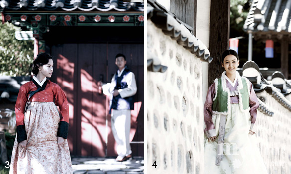 한복 맞춤 시 가장 먼저 결정해야 하는 요소. 어떤 소재를 택해야 할까다. 한복은 대부분 실크로 제작한다. “본견 또는 깨끼로 하고 싶어요”라고 말하는 신랑 신부가 많은데 본견은 실크를 지칭하며, 깨끼는 한복을 만들 때의 바느질하는 기법 중 하나다. 요즘은 사계절 내내 입을 수 있는 한복으로 맞추는 경향이기에 명주, 갑사, 숙고사, 자미사 등 사紗 종류의 소재가 인기. 또 겨울에 혼례를 치르거나 화려한 광택이나 고급스러운 느낌을 강조하고 싶은 신부들은 흔히 비단이라고 부르는 양단, 모본단 등을 선택한다.
