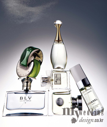 (왼쪽 아래부터 시계 방향) 불가리 블루 오 드 퍼퓸 II 시원한 만다린을 중심으로 한 톱 노트, 베이스 노트로 나무 향을 풍기는 아이티 벤티버가 섞여 우아한 느낌을 전한다. 30ml 7만5000원. 불가리 옴니아 그린 제이드 그린 만다린과 스프링 워터의 신선한 공기와 재스민의 청순함, 화이트 트리의 베이스 노트에 피스타치오 향이 혼합되어 여성스럽다. 25ml 5만5000원. 디올 쟈도르 로 레몬과 목련의 시트러스 향이 우아한 품격을 선사한다. 75ml 11만원. 샤넬 크리스털 오 베르뜨 목련과 재스민, 네롤리 향이 짝을 이뤄 편안한 이미지를 연출. 새벽이슬같이 투명한 가벼움이 떠오르게 한다. 50ml 10만원. 베르사체 베르상스 베르가모트와 그린 만다린의 자연 향이 센슈얼한 감성을 전달한다. 30ml 6만1000원. 미스 디올 쉐리 비터 오렌지, 치자나무 꽃 향이 어우러져 깔끔한 향을 전한다. 50ml 9만원.