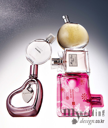 (왼쪽 아래부터 시계 방향) 비비 시어 시트러스 칵테일, 사과 향의 톱 노트와 피오니, 재스민, 프리지어의 미들 노트, 감각적인 머스크 향이 베이스 노트로 깔리면서 로맨틱한 분위기를 연출한다. 30ml 4만5000원. 샤넬 샹스 오 땅드르 오 드 투왈렛 그레이프 프루츠와 모과, 히야신스, 화이트 머스크 등 부드러우면서 자극적인 향조가 회오리치듯 감각적으로 퍼진다. 따뜻한 과일 향, 생동감 넘치는 그린 노트와 재스민의 유연한 향기가 여성스러움을 부각시킨다. 50ml 10만5000원. 에르메스 오 클레어 드 메르베이 마시멜로처럼 부드러우며 솜털같이 가벼운 느낌의 향수. 파우더 느낌의 바닐라 향과 경쾌한 느낌의 레몬 향에 은은한 꽃향기가 가미되어 섬세한 이미지를 완성한다. 50ml 10만9000원. 미스 디올 쉐리오 드 투왈렛 쾌활한 블러드 오렌지 에센스가 네롤리의 달콤쌉싸래함과 어우러진다. 이어 재스민과 일랑일랑, 파촐리의 푸른 노트가 마지막 향을 남기며 사라진다. 50ml 9만8000원. 만다리나 덕 큐트 핑크 꽃향기와 프루츠 향이 완벽하게 조화를 이루는 달콤하고 부드러운 향. 클레멘타인과 핑크 프리지어, 레드 애플 잔향의 톱 노트, 우드 계열인 머스크가 관능미를 풍기며 마무리된다. 30ml 4만원 만나리나덕.