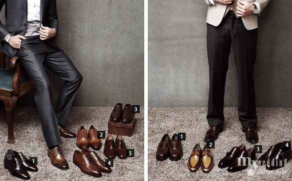 5 컬러감을 즐길 줄 아는 멋쟁이 신랑이라면 와인 빛이 감도는 브라운 컬러의 슈즈를 추천. 가격미정 알프레드 던힐.