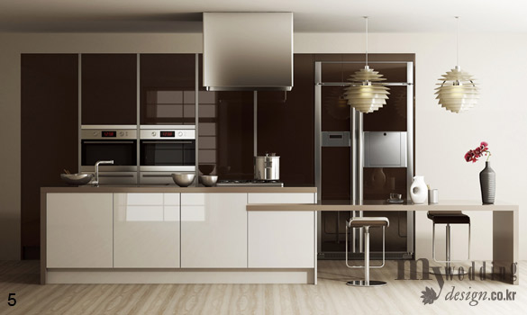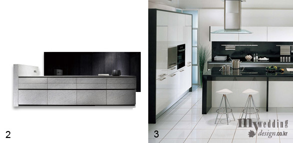단순하고 깔끔한 스타일의 미니멀리즘 주방 가구는 손잡이와 장식을 최소화한 것이 특징으로 공간이 한층 넓어 보이는 효과가 있다. 또 오래두고 봐도 쉽게 질리지 않는 것이 장점.