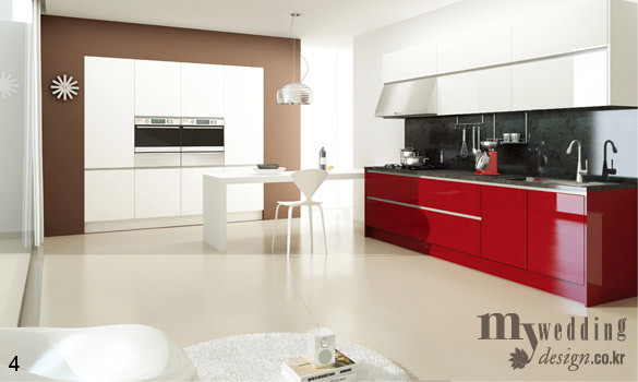 5 에넥스 오페라 핸들리스는 하이글로시 도장과 레드, 화이트, 그레이, 블랙 등 다채로운 컬러의 조화로 우아하면서도 고급스러운 주방 분위기를 연출한다. 매립형 손잡이로 군더더기 없는 디자인이 인상적. 가격미정