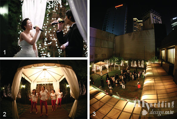 3 야외에서 열린 3부 가든파티. 패브릭 장식을 통과하는 은은한 조명이 가든을 더욱 로맨틱하게 만들어주었다.