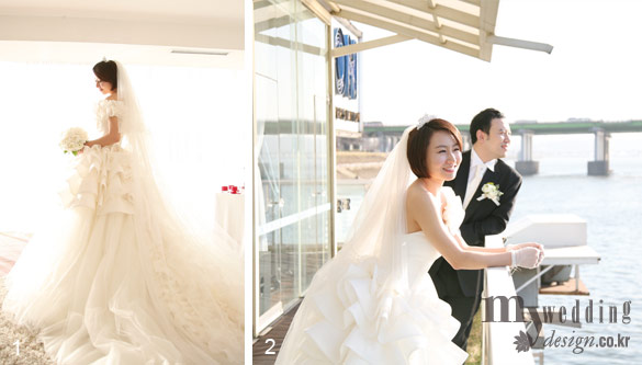 1 러플 장식이 사랑스러운 웨딩드레스가 귀여운 이미지의 신부와 더없이 잘 어울렸다.
