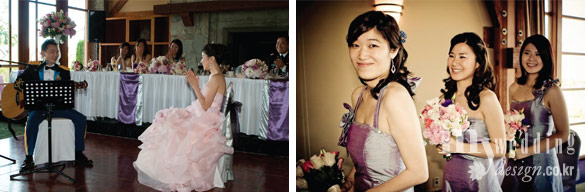 (오른쪽) 테마 컬러인 바이올렛 컬러 드레스를 맞춰 입은 신부 들러리들.