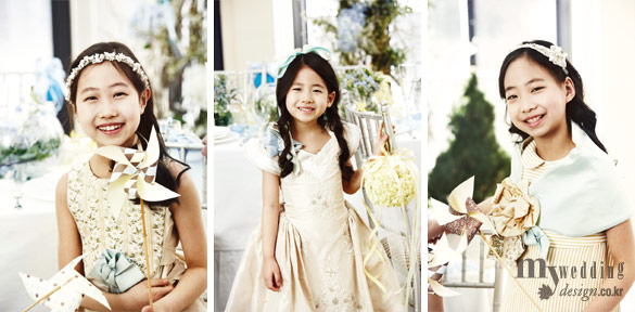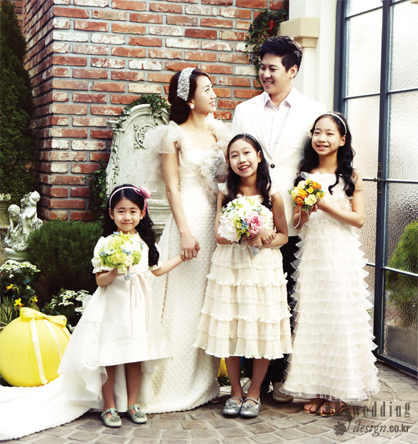 Family Dress (민하) 비대칭 스커트 자락이 독특한 분위기를 연출하는 드레스는 데니쉐르 바이 서승연, 핑크 컬러 헤어밴드는 쁘띠슈, 민트 컬러 플랫 슈즈는 앙뉴. (엄마) 살구 톤의 풍성한 러플 장식 상의가 여성스러운 드레스와 스팽글 헤어밴드는 데니쉐르 바이 서승연. (아빠) 화이트 재킷과 블랙 팬츠는 빈폴맨, 은은한 핑크 컬러 셔츠는 더셔츠스튜디오, 화이트 컬러 드라이빙 슈즈는 미소페. (민서) 프릴 장식의 티어드 스커트 자락이 사랑스러운 드레스는 영드레스, 미니 티아라 장식의 헤어밴드는 마가젱, 실버 컬러 슈즈는 스트라이드라이트. (민진) 오간자 소재가 층층이 러플을 이뤄 경쾌한 느낌을 자아내는 화이트 드레스는 영드레스, 비즈 헤어밴드는 마가젱, 골드 컬러의 스트랩 샌들은 바바라키즈.