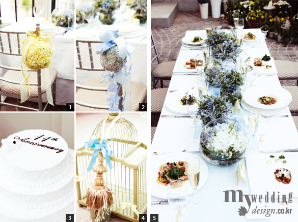 4 Birdcage 옐로와 블루 리본을 장식한 새장으로 공간을 우아하게 연출했다.