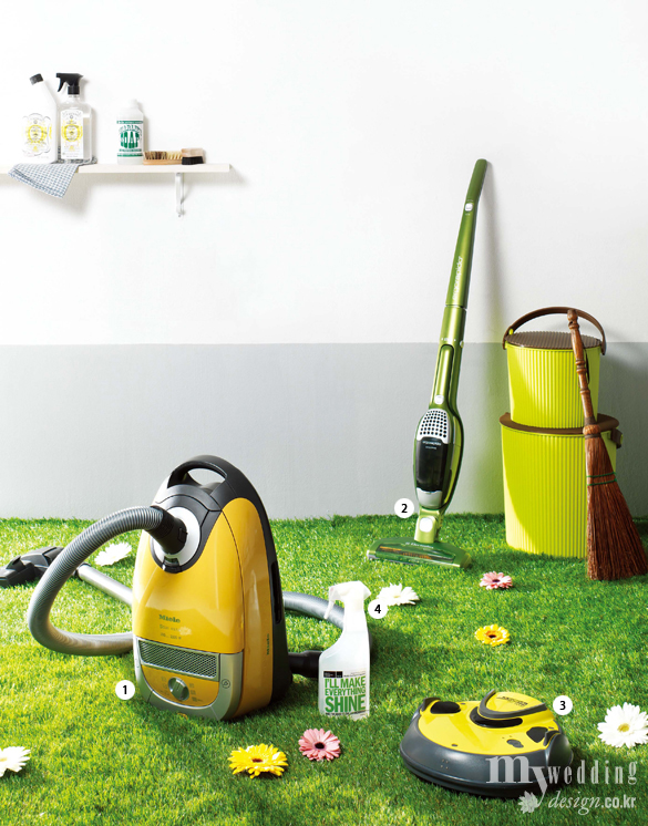가정에서 가장 많이 사용하는 진공청소기는 강력한 흡입력과 저소음은 기본이고, 청소 중 발생하는 먼지가 새어나가지 않도록 막아주는 필터를 유심히 살펴볼 것. 요즘에는 미세한 먼지 입자까지 걸러내는 고밀도 필터, 공기 청정 필터 등을 장착한 제품이 대세다. 신혼부부들에게는 공간을 절약해주는 멀티형 제품만큼 유용한 것도 없다. 핸디형과 스틱형 또는 스팀과 진공 두 가지가 결합한 투인원 청소기가 그것. 스마트 센서로 알아서 청소해주는 로봇청소기나 침구의 알레르기 원인균을 제거하는 침구 살균 청소기 등 아이디어 제품들도 갖춰두면 유용하다.