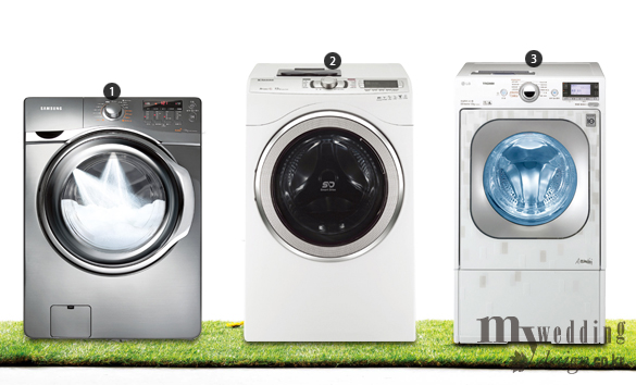 신혼부부는 편리한 기능과 세련된 디자인 때문에 일반 세탁기보다는 드럼세탁기를 선호한다. 보통 혼수로는 이불 빨래가 가능한 10~12kg 이상 제품이 인기. 15분 만에 빨래를 끝내주는 스피드 워시 기능, 세탁물 양에 맞춘 자동 세제 투입 기능, 특수 소재세탁 기능 등 브랜드별, 제품별로 차별화된 부가 기능을 내세우니 필요한 기능을 꼼꼼히 따져보는 현명함을 발휘하도록.