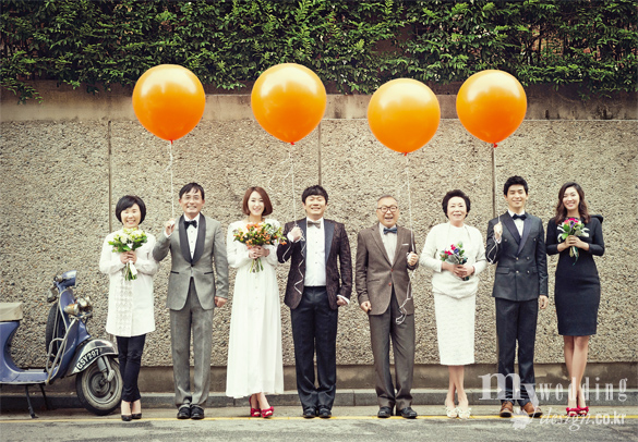 귀여운 외할아버지를 중심으로 스타일리시한 외할머니, 인자한 어머니와 아버지, 대범한 언니와 잘생긴 예비 형부, 그리고 저와 사랑스러운 예비 신랑이 한자리에 모였습니다. 유쾌한 우리 가족이 새롭게 맞이하는 식구와 함께하는 첫 사진이네요. 무슨 일이든 신나게 해내는 우리 가족다운 사진이 완성됐습니다.(왼쪽부터 어머니 정미용, 아버지 이장우, 신부 이아람, 신랑 김수남, 외할아버지 정태종, 외할먼니 이창수, 예비 형부 서윤성, 언니 이나연)
