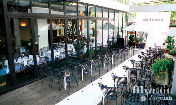 다양한 종류의 나무와 자연석 등 도심 속에서 자연을 느낄 수 있도록 꾸민 이탤리언 레스토랑에서 야외 결혼식을 진행한다. 낮에는 햇살 아래에서 화사한 결혼식을, 밤에는 로맨틱하고 은은한 캔들 조명을 장식해 분위기 있는 예식을 올릴 수 있다. 메뉴 또한 주방장이 직접 선별한 각종 이탈리아 음식과 퓨전 뷔페로 진행해 하객의 만족도가 높으며, 같은 시간에 다른 행사를 진행하지 않아 프라이빗한 파티 예식을 열기에 적당하다. 서초점뿐만 아니라 잠실점, 목동점에서도 하우스 웨딩을 진행할 수 있다.