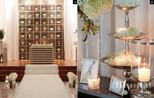 3 주례 단상 뒤 벽면을 순백의 생화와 캔들을 화기에 담아 장식했다.