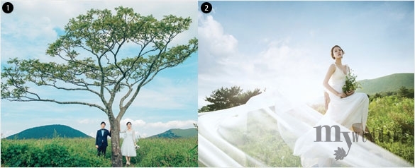 "제주도 특유의 푸름이 묻어나는 신비로운 무드의 사진을 마음껏 연출할 수 있다. 햇살이 드리우는 순간, 포착된 커플의 사진은 로맨틱한 매력을 극대화시킨다."