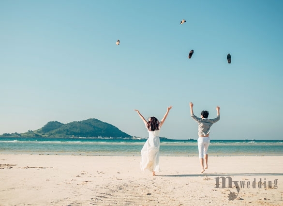 "일생에서 단 한 번뿐인 웨딩 화보를 보다 낭만적으로 완성시켜줄 제주 해변. 은은하게 반짝이는 에메랄드 빛 해변에서 가슴 설레는 웨딩 촬영을 연출해보자."