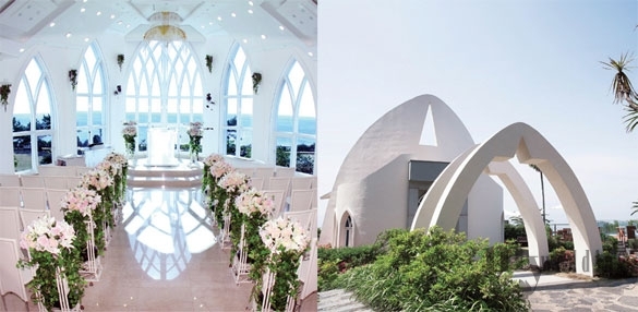 구하얏트 리젠시 제주의 레인보우 채플은 채플 웨딩 베뉴로 이미 유명한 곳. 조적인 인테리어와 통유리창을 통해 푸른 바다가 펼쳐지는 레이보우 채플과 야외의 클리프가든은 유럽을 연상시키는 배경을 선사한다.